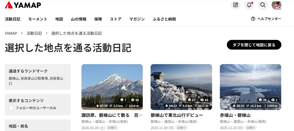 3日前に登った人がいるはずのYAMAPを検索しても、記録が出てこない。