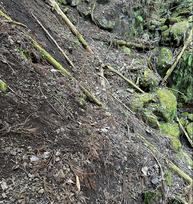 百名山ばかりを登っていると、道が整備されていることに慣れっこになってしまってて、台風や大雨で寸断されて復旧が手つかずになっている低山の恐ろしさを身体で理解できていない。